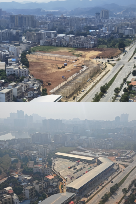 △塘尾闲置留用地盘活前后对比图-龙城美食城