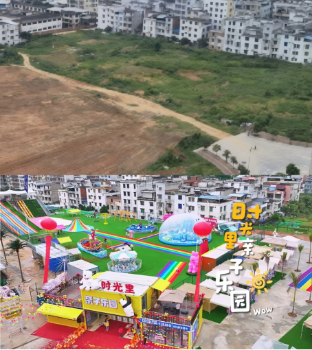 △塘尾闲置留用地盘活前后对比图-时光里亲子乐园